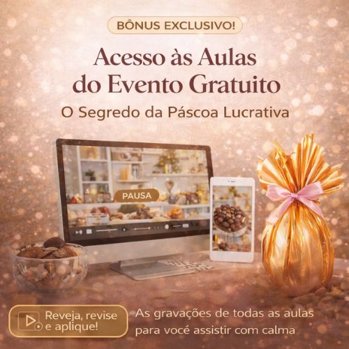 Acesso às gravações completas do evento “O Segredo da Páscoa Lucrativa” para você assistir, revisar e aplicar cada estratégia no seu tempo. 🚀🍫